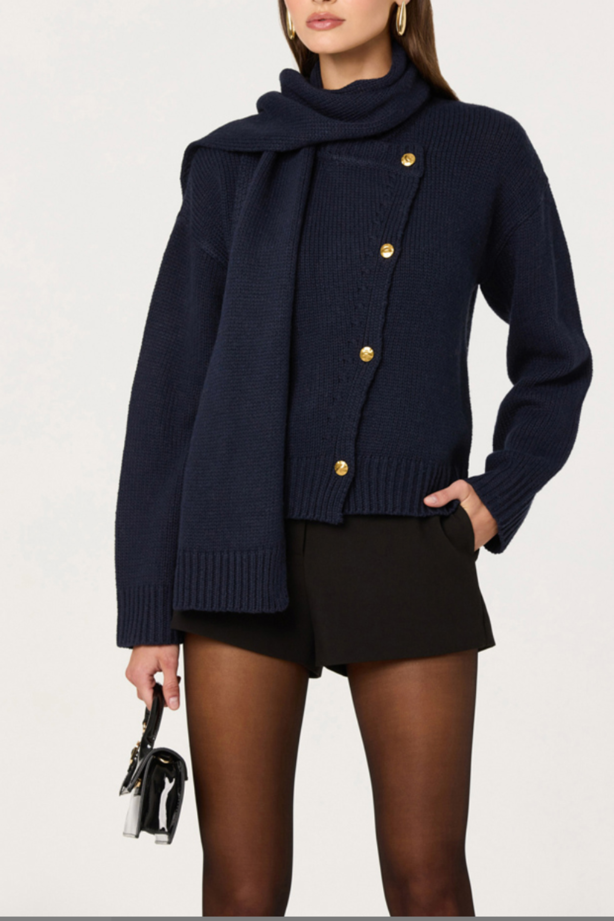 This sweater is the perfect office layer — polished, versatile, and easy to style with all your workwear staples. The removable scarf makes it great for your morning commute on brisk fall mornings.
