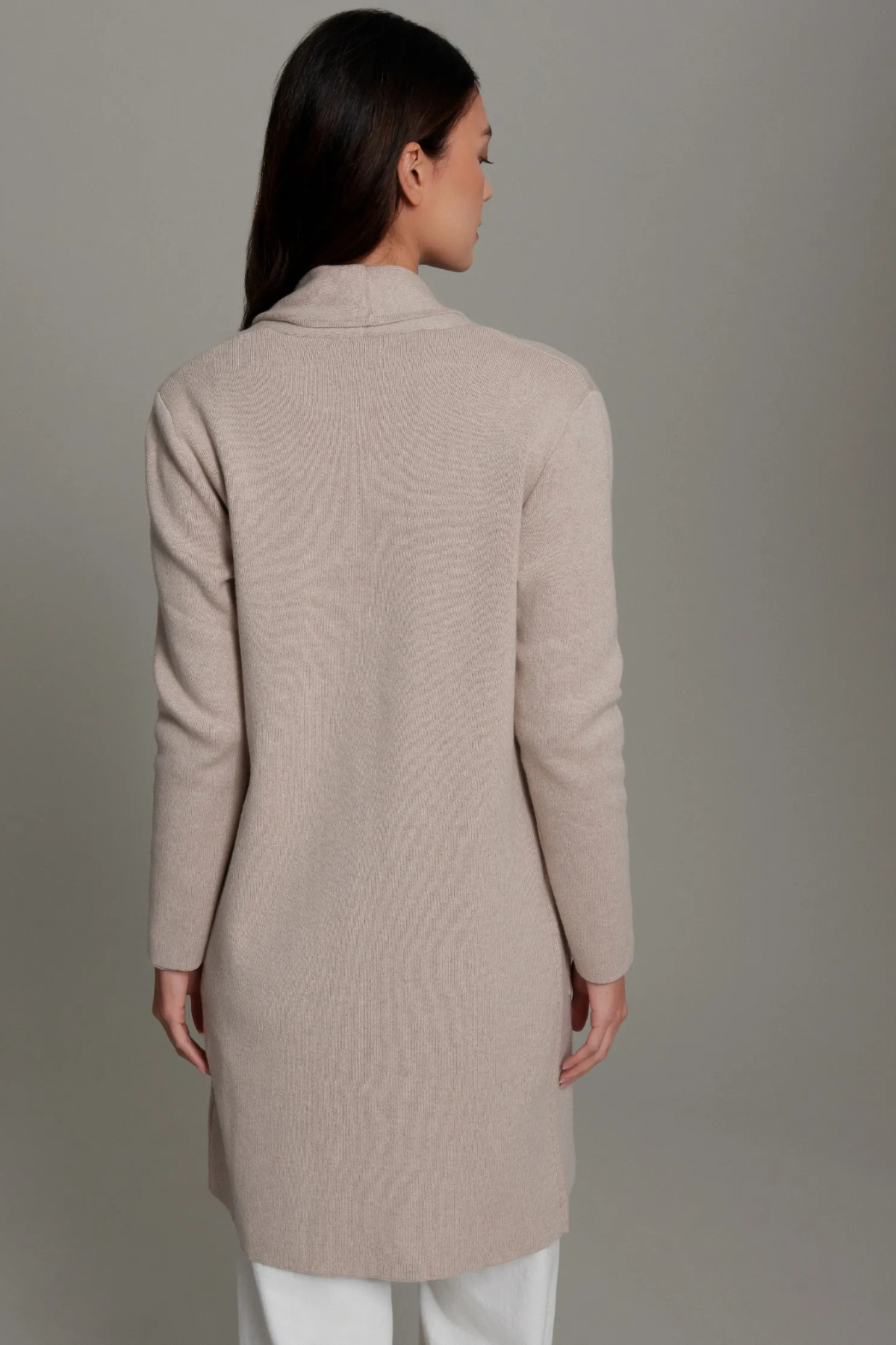 The Sarah Shawl Collar Jacket is a light-weight, chic style made in a cotton and cashmere blend. You'll love the feel and drape of this long jacket every time that you wear it.