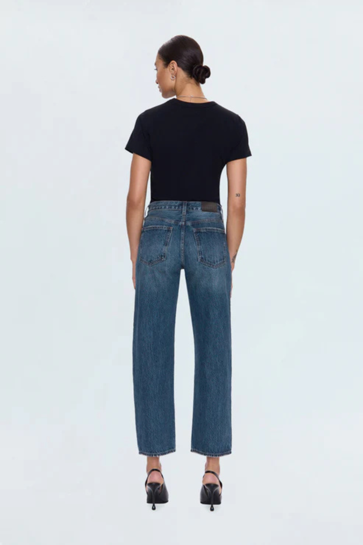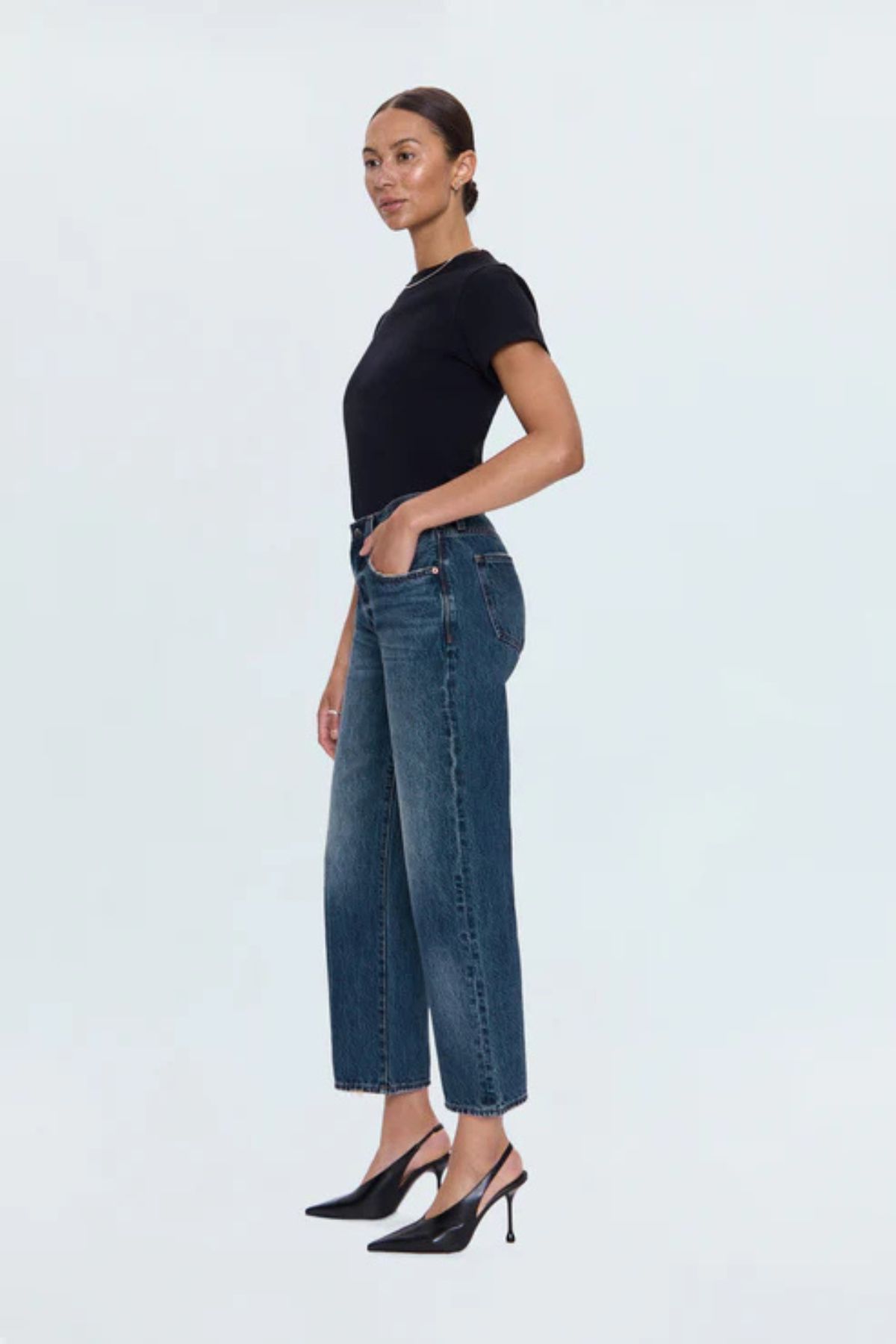 The best-selling jean that understands proportions. Lexi sits at the perfect mid-rise with our signature bowed straight leg, and a subtle curve at the knee that creates dimension without effort. Finished with a 29" inseam, the silhouette tapers to a cropped ankle with a clean hem. Crafted from our rigid denim in Artisan, a rich dark wash with gentle fading around the knees and thighs.