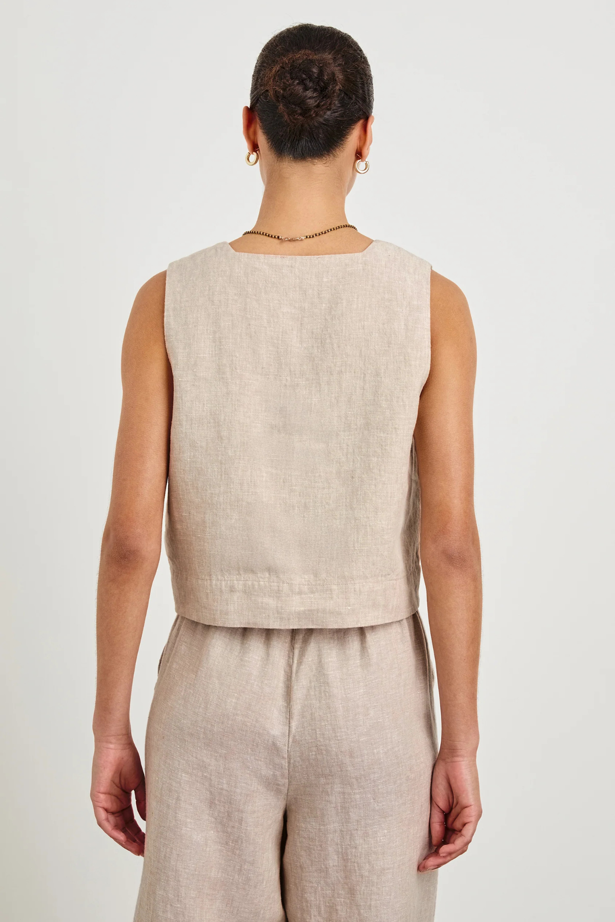 The Akira is a fully-lined heavy linen crop with bust darts to ensure a tapered fit and features a flattering square-neckline. For the ultimate all-white everything outfit, pair with the Carly skirt.